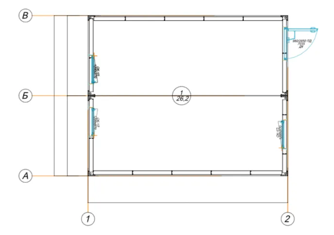 - После этого слой со стенами был скрыт и заморожен, оставив видимыми только корректно размещённые окна и двери в составе общей модели.