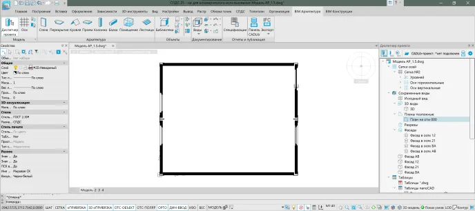 Основным итогом пилотного проекта стало успешное выполнение полного цикла проектных работ в nanoCAD BIM Строительство на реальном объекте. Компактность здания позволила сконцентрироваться на детальном освоении ключевых принципов работы программного продукта — от использования системных инструментов до построения параметрических элементов ограждающих конструкций и автоматизированной генерации комплекта рабочей документации.