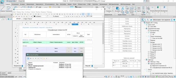 В результате была получена спецификация, динамически связанная с моделью. При изменении количества или параметров любого элемента в модели соответствующие строки в таблице обновляются автоматически, что гарантирует абсолютную актуальность данных.