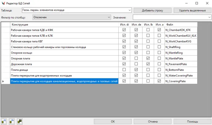 На сегодня эта таблица служит скорее необходимым связующим элементом БД, но разработчики решают задачу совершенствования ее функциональности. Пока же можно редактировать существующие элементы таблицы, а также создавать новые элементы для этих конструкций в таблице Элементы колодцев (рис. 26).