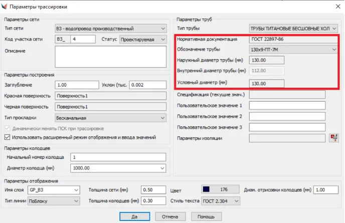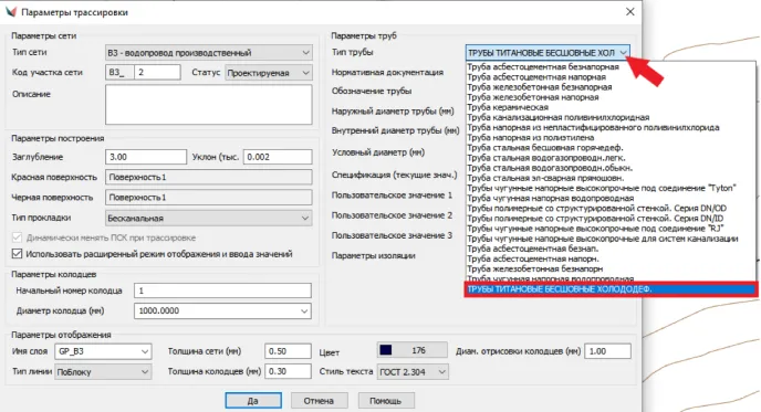 Во время трассировки (рис. 1), когда мы выбираем тип трубы, размещенной в БД, вместе с ней подхватываются и ее параметры, что значительно ускоряет работу сетевика.