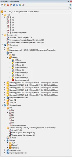 - эффективное моделирование сложных объектов – процесс создания 3D-модели конвейера был оптимизирован благодаря специализированному функционалу для работы с деталями (.dwp) и сборками (.dwz). Разделение на этапы моделирования отдельных деталей и их последующей сборки в сложную конструкцию соответствует лучшим практикам машиностроительного проектирования, поддерживает структурированность и управляемость проекта;