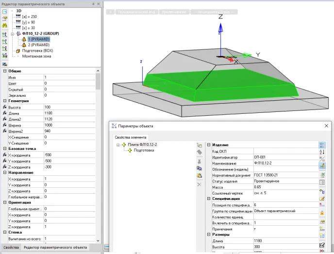 На рис. 6 показана собранная в редакторе железобетонная плита ФЛ 10.12-2 по ГОСТ 13580-2021 с бетонной подготовкой.