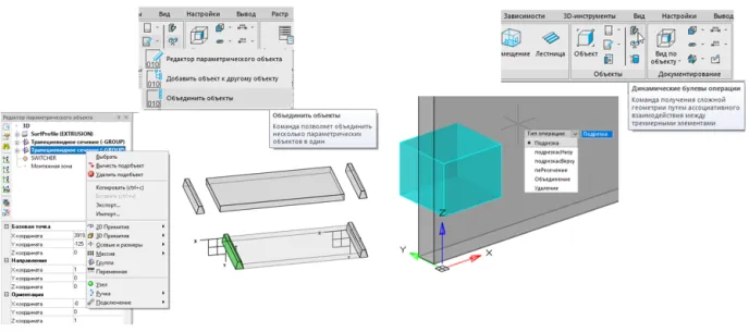 Режимы объединения объектов и динамические булевы операции представлены на рис. 5.