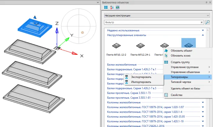 4. Импортируем новые объекты в базу через контекстное меню исходного объекта: Типоразмеры → Импортировать.