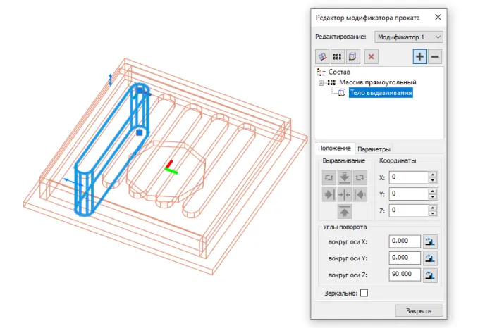 Объекты библиотеки можно объединять, редактировать с помощью булевых операций в редакторе параметрического оборудования или посредством нового универсального инструмента Динамические булевы операции, который значительно ускорил работу с геометрией. При перемещении объекта-оператора подрезка динамически перемещается с ним.