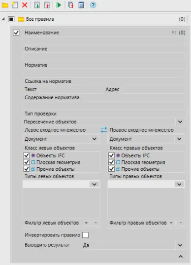 - Входит в – проверяет предположение о том, что левый объект входит в правый согласно структуре IFC либо наоборот – правый объект входит в левый, если установлена галочка Обменять левые с правыми.