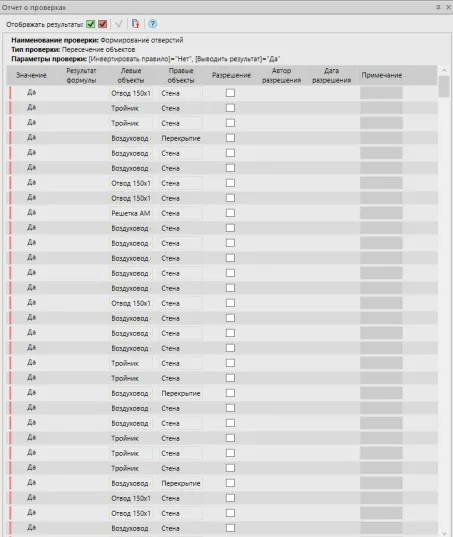 После проведения проверки, пользуясь полученными результатами в отчете, пользователь может проводить точечные изменения в модели путем перехода к проблемным местам модели с дальнейшим внесением изменений в геометрию элементов. После редактирования модели с помощью всё тех же инструментов проверки модели и отчетов о них, пользователь имеет возможность автоматизировано проверять промежуточные результаты своей работы, ускоряя формирование отверстий, основываясь на актуальной модели смежных разделов.