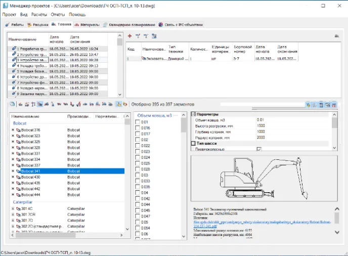 Далее создается список техники, которая будет использоваться на стройплощадке. Программа предоставляет обширную базу машин и механизмов со всеми необходимыми характеристиками, что позволяет подбирать технику по заданным параметрам (рис. 23).