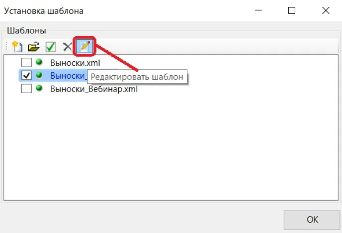 Отметим, что файлы шаблонов выносок можно подключать только из папки по указанному пути. При ином расположении файла программа напомнит об этом специальным сообщением.