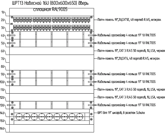 nanoCAD BIM СКС вычерчивает схему расположения оборудования в шкафу (рис. 1).