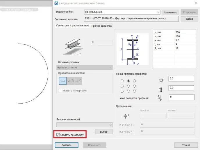 Да, в nanoCAD BIM Конструкции такая возможность есть. Для элементов «Балка» и «Колонна» из металлопроката, железобетона и дерева она реализуется через команды Создание колонны/балки. При вызове команды (допустим, Создать металлическую балку) нужно поставить галочку в поле Создать по объекту (рис. 1), а затем выбрать полилинию.
