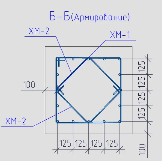 8. Получаем схему армирования по профилю КЖ_Схема армирования монолитной конструкции (M20) – (рис. 34).