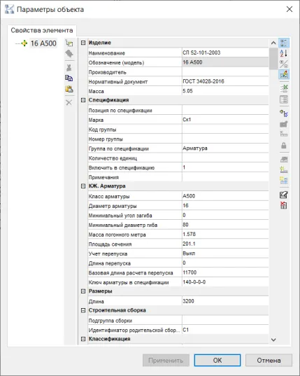 Сетка готова. При этом у каждого стержня есть параметры (рис. 26), которые можно редактировать, добавлять новые, выводить с их помощью проекции и получать спецификации.