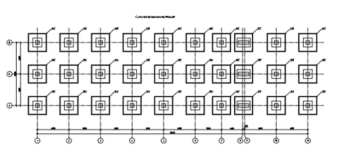 Схема расположения ростверков представлена на рис. 5, а проекция ростверка для опалубки – на рис. 6.