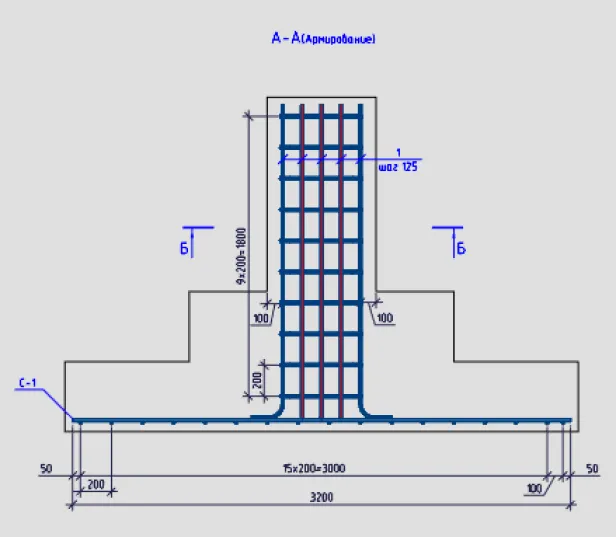 7. Переходим к армированию вертикального сечения ростверка.