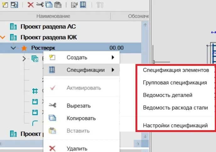 В Металлоконструкциях также можно выполнять разделы КМ и КМД с получением автоматически сформированных спецификаций.
