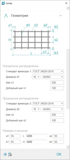 3. Создаем сетку, указываем диаметр, класс и геометрию (рис. 9).