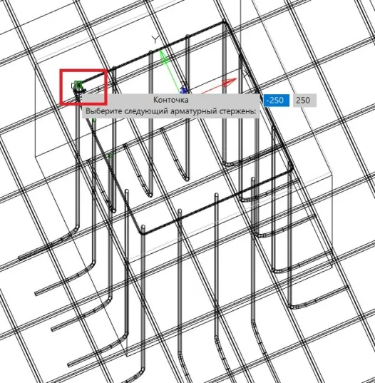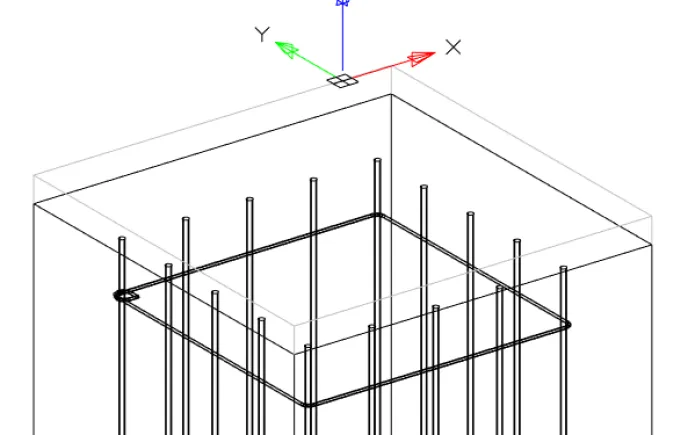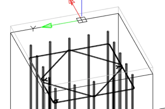 Аналогичным образом создаем незамкнутые хомуты для дополнительной перевязки арматуры. Чтобы создать незамкнутый хомут (рис. 32), необходимо пропустить последний шаг, не указывая первый стержень, – для этого нужно нажать клавишу Enter.