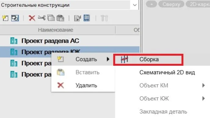 2. Создаем в Менеджере проекта сборку КЖ (рис. 8).