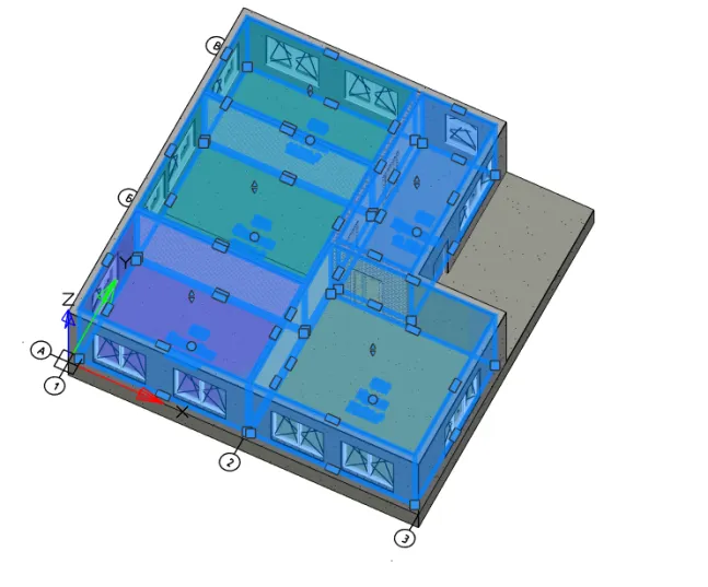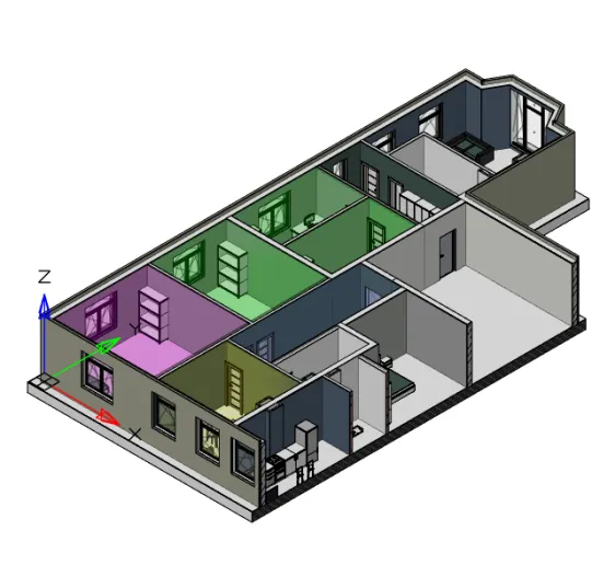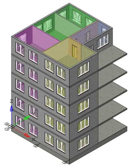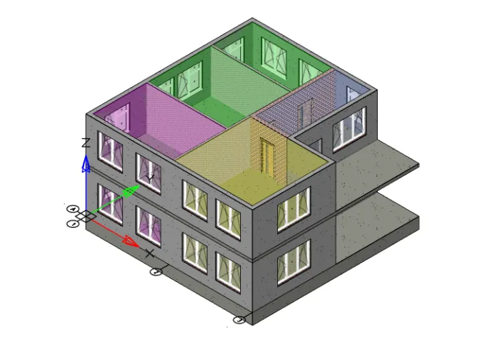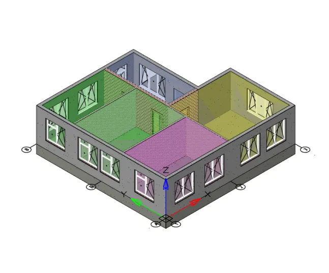 Добавим в модель дополнительные элементы: дверные и оконные проемы и помещения. Получим модель, показанную на рис. 3.
