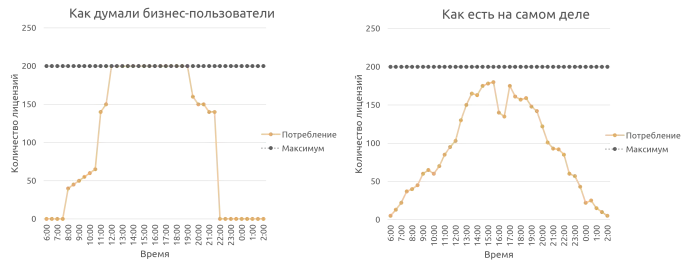 По факту число требующихся лицензий оказалось меньше максимального количества пользователей. Исходя из этого сделали вывод об объемах закупки ПО, с учетом 10% запаса на возможные переработки во время сдачи проектов.