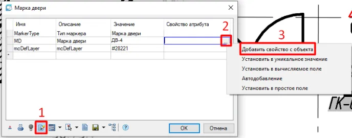 Размещаем марку рядом с дверью и всплывает окно Марки двери (рис. 5).