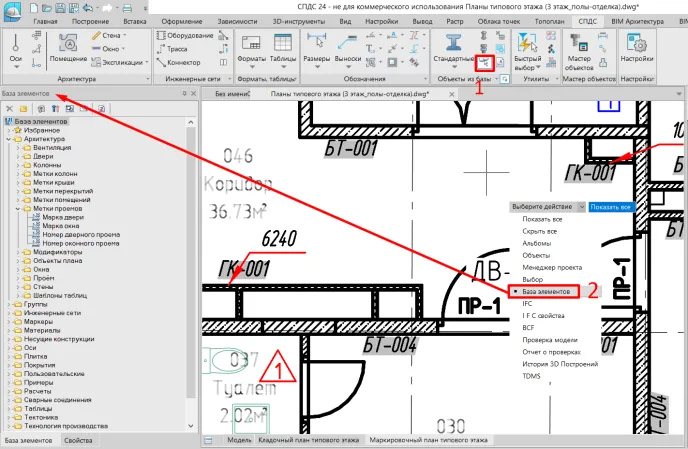 Здесь мы проанализируем, как с помощью компонента «СПДС» эффективно работать с BIM-объектами, на примере создания марок и выносок, а также настроим базу данных для повторного использования элементов. Пошагово разберемся, как правильно связывать BIM-объекты с марками и выносками, чтобы ускорить работу и минимизировать ошибки.