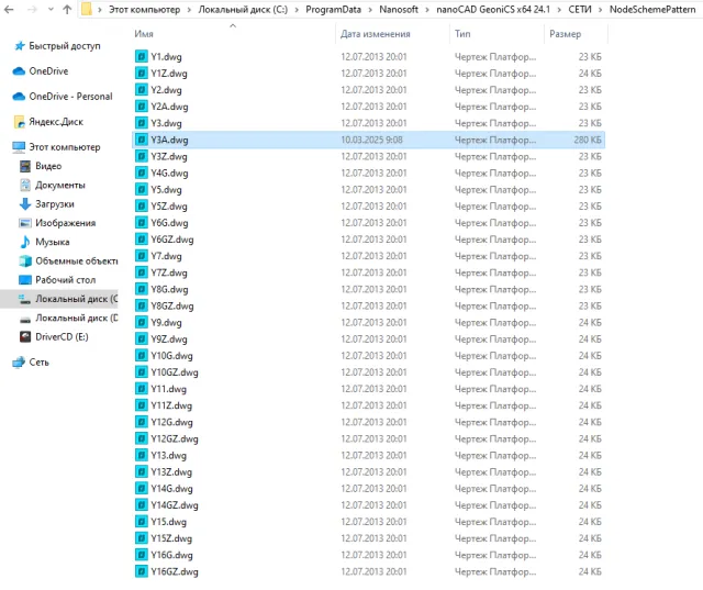 Теперь давайте рассмотрим особенности добавления в БД схемы узлов колодцев. В отличие от добавления труб, когда задействуются только числовые и текстовые параметры, в схемах узлов колодцев есть и графическое отображение. Чтобы его добавить, нужно отрисовать схему средствами Платформы nanoCAD (рис. 12). Наиболее быстрый способ – скопировать уже созданный узел, изменить его, а затем сохранить под другим именем по пути C:\ProgramData\Nanosoft\nanoCAD GeoniCS x64 24.1\СЕТИ\NodeSchemePattern.