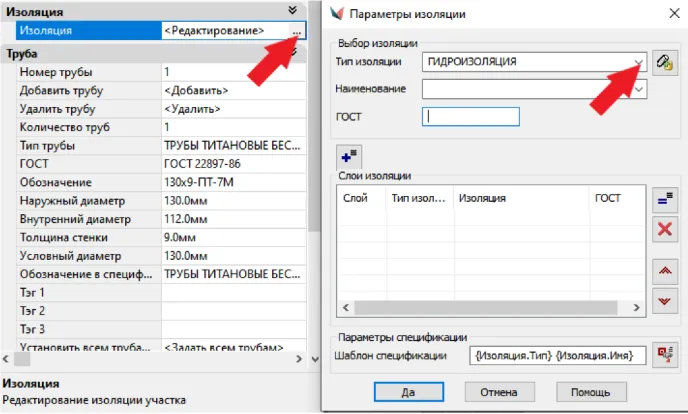 Затем найдем заголовок Изоляция и нажмем <Редактирование> (рис. 21). В этом окне мы можем выбрать тип изоляции: как видим, добавленный нами тип здесь отображается.