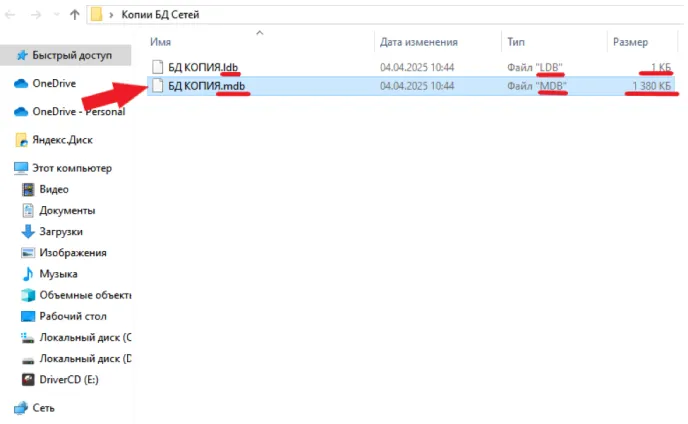 Есть нюанс, на который стоит обратить внимание: при экспорте новых элементов в существующую копию базы создаются два файла разного размера с расширениями .ldb и .mdb соответственно (рис. 3). Файл большего размера с расширением .mdb – это и есть копия БД. Если вы хотите передать ее для использования на другом устройстве, вам следует выбрать именно этот файл.