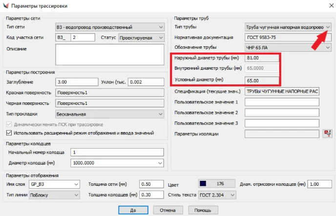 Во время трассировки (рис. 1), когда мы выбираем тип трубы, размещенной в БД, вместе с ней подхватываются и ее параметры, что значительно ускоряет работу сетевика.
