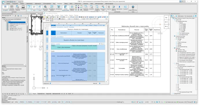 Данные для экспликации помещений, спецификации элементов заполнения проемов, а также ведомости стен и перегородок получались непосредственно из параметрических объектов, созданных в конфигурации «nanoCAD BIM Архитектура».