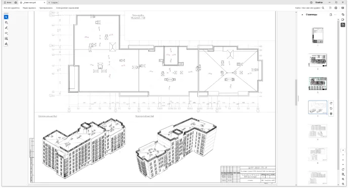 По результатам выполнения пакетной печати получен многостраничный файл формата PDF с набором чертежей комплекта.