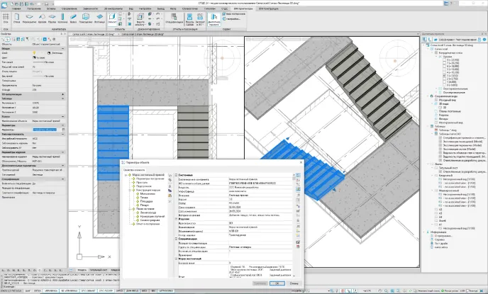 Возможно создание элементов лестниц прямым моделированием инструментами модуля «3D» с преобразованием объектов в параметрические и присвоением им необходимых параметров.