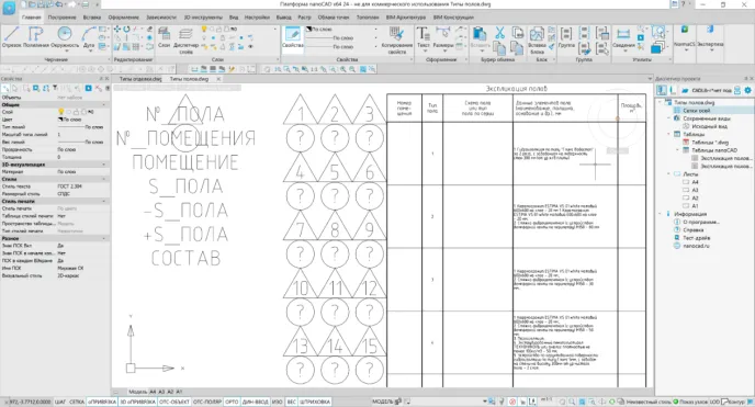 Табличные отчеты создавались в таблицах nanoCAD, формы которых выбирались из базы шаблонов таблиц, предлагаемой Платформой nanoCAD.