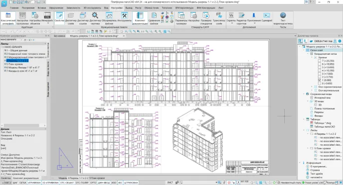 Эксперты Академии BIM стали первопроходцами и выполнили фрагмент реального проекта на основе разработки российской девелоперской компании «Сити-XXI век». Оставаясь в рамках системы nanoCAD и используя Платформу, конфигурацию «nanoCAD BIM Архитектура», а также средства модуля «СПДС», наши специалисты создали BIM-модель жилого дома и комплект основных архитектурных чертежей на ее основе.