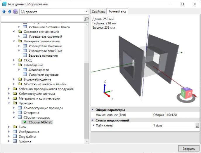 - Оборудование: новая функция создания сборок кабельных проходок с возможностью их отображения как в 2D, так и в 3D-видах модели.