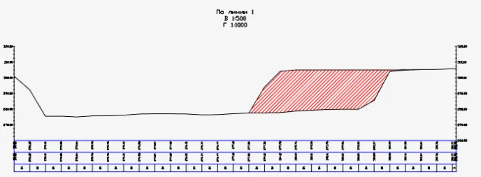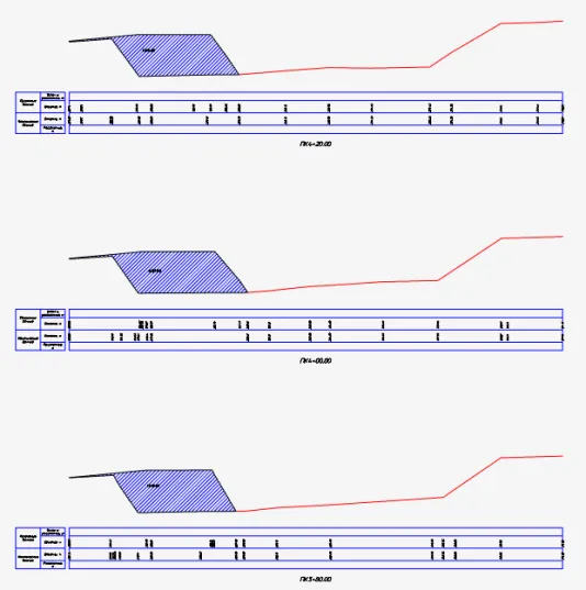 Возможно построение как «быстрого профиля» для анализа поверхностей, так и профиля с более подробной информацией о поверхностях и объектах чертежа. На него можно выводить данные о вертикальной и горизонтальной геометрии поверхностей, информацию о пересечениях с объектами чертежа и скважины, сформированную в модуле «Геомодель». Динамическая связь профиля с поверхностями позволяет получать актуальные данные по поверхности (рис. 6-7).
