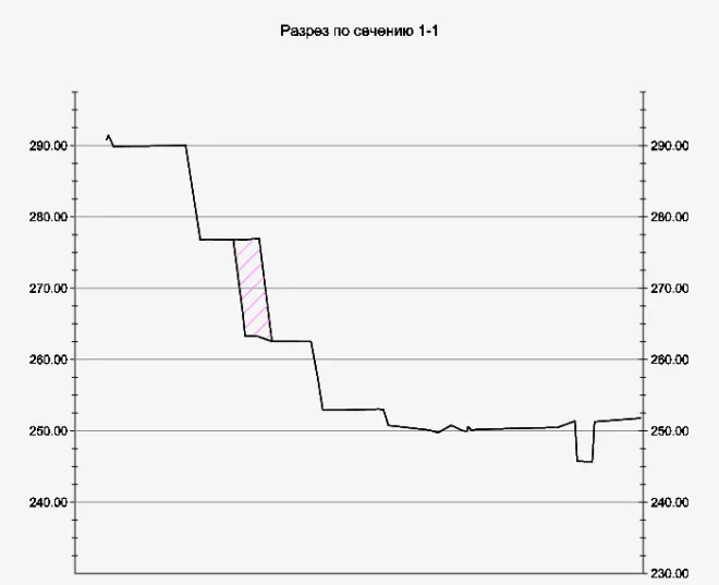 Разрезы по профильным линиям являются неотъемлемой частью маркшейдерской документации. Благодаря инструментам модуля «Сечения» можно одновременно выполнять оформление, пополнять документацию (оформление сечений) и подсчитывать объемы по сечениям.