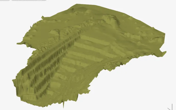 Съемка карьера также может быть выполнена с помощью лазерного сканирования и обработана в сторонних программах. В дальнейшем ее можно загрузить в nanoCAD GeoniCS как точки или поверхности. Поддерживается загрузка поверхностей из других программ – в формате LandXML. Поверхность, построенная по съемке с БПЛА, представлена на рис. 3.