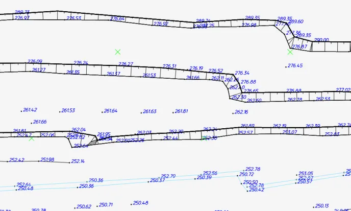 Помимо оценки проектной и существующей модели программа позволяет проектировать подъездные дороги и съезды.