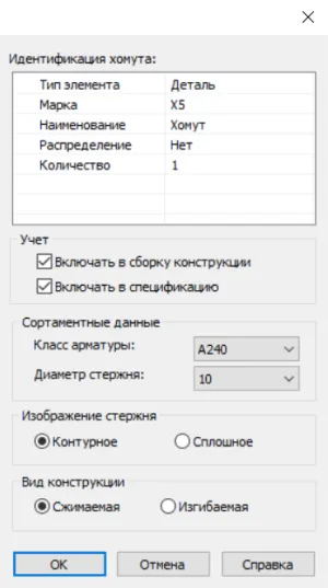 Крюк (отдельный инструмент для создания загибов арматурных стержней и их последующего редактирования).