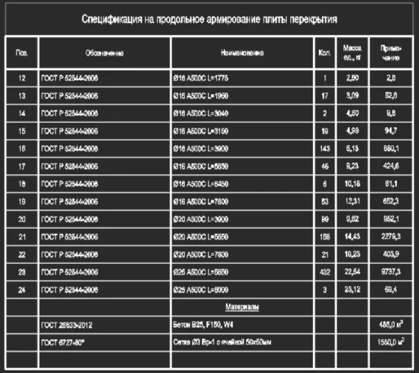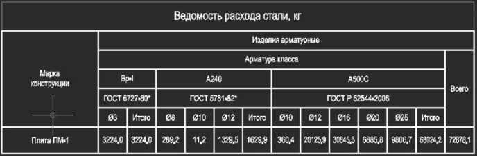 На основе чертежей существует возможность практически двумя щелчками мыши сформировать спецификацию арматурных изделий (рис. 19), ведомости расхода стали (рис. 20), деталей (рис. 21), перемычек и ряд других документов.