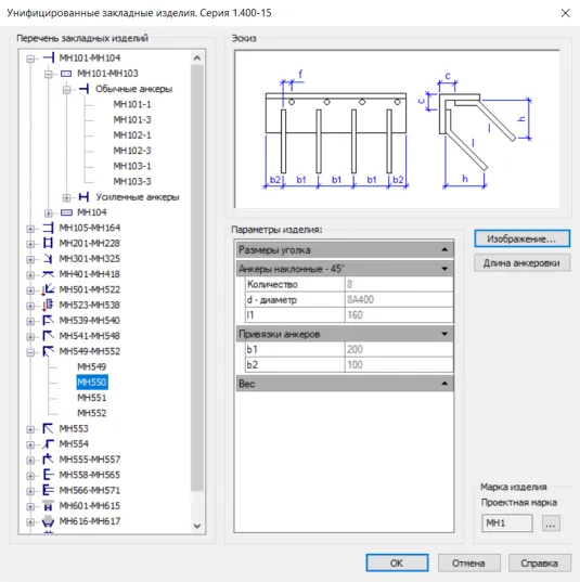 Пойдем дальше. В программу заложены закладные детали по серии 1.400-15 (рис. 11).