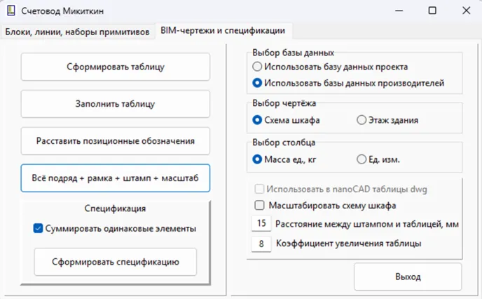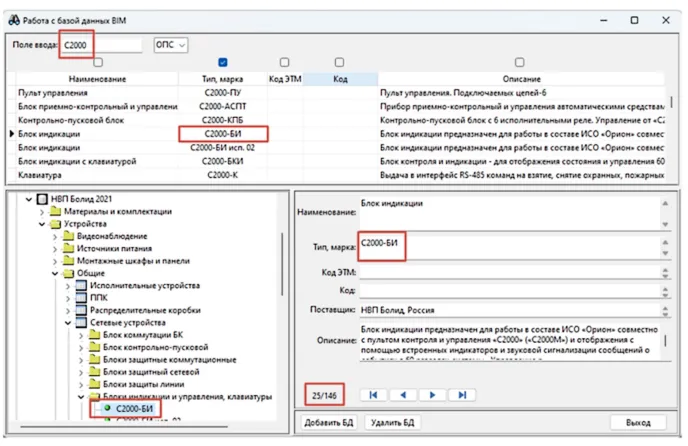 - следующим шагом программа заполняет таблицу. Для этого в зависимости от положения переключателя она обращается к базе данных производителя или проекта и выбирает из нее недостающие данные по оборудованию;