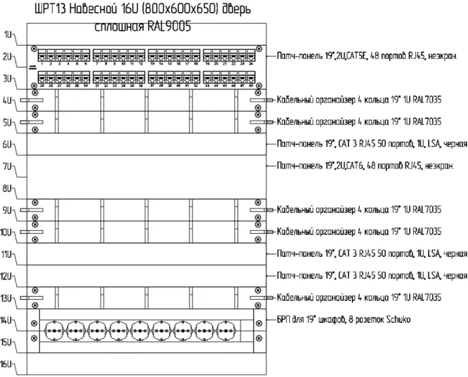 nanoCAD BIM СКС вычерчивает схему расположения оборудования в шкафу так, как показано на рис. 7.