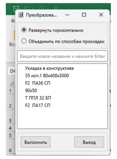 После вывода таблицы прокладки кабелей в Excel из nanoCAD BIM ОПС или nanoCAD BIM СКС запускаем программу преобразования. В момент запуска она выбирает все уникальные наименования кабельных конфигураций и выводит их в список – обычное дерево, узлы которого можно перетаскивать, задавая им необходимый порядок следования. В том же порядке будут созданы столбцы для вывода данных.