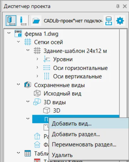Чтобы создать чертеж фермы, можно воспользоваться несколькими способами: через раздел Документирование или сочетание использования функциональной панели Диспетчер проекта и раздела Документирование.