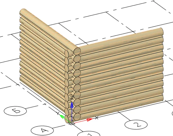 В дальнейшем применяем функцию Подрезка так же, как в первом случае, показанном на рис. 12-13. Результат этих действий – готовые стены из брусьев (рис. 16).